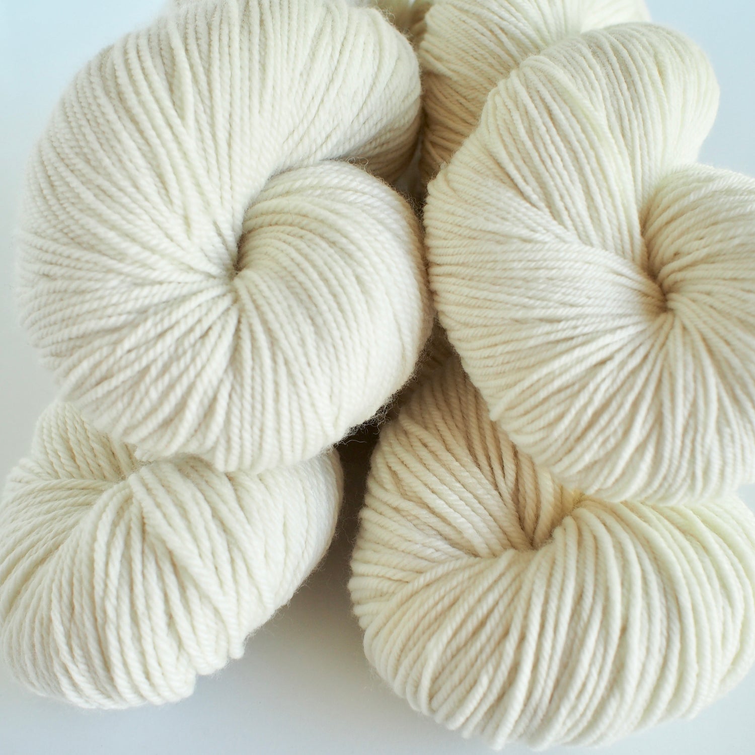 This yarn is perfect for warmer weather knitting! It is a blend of 50% Pima Cotton, and 50% fine 21.5 micron superwash Merino Wool. The cotton is great for warmer climates, while the wool gives it enough elasticity so it is still comfortable to knit with. Your knitted fabric will have great drape, and the 4 ply construction will show texture nicely. The cotton in the yarn doesn’t absorb acid dyes, so there is a slightly heathered effect when hand-dyed.