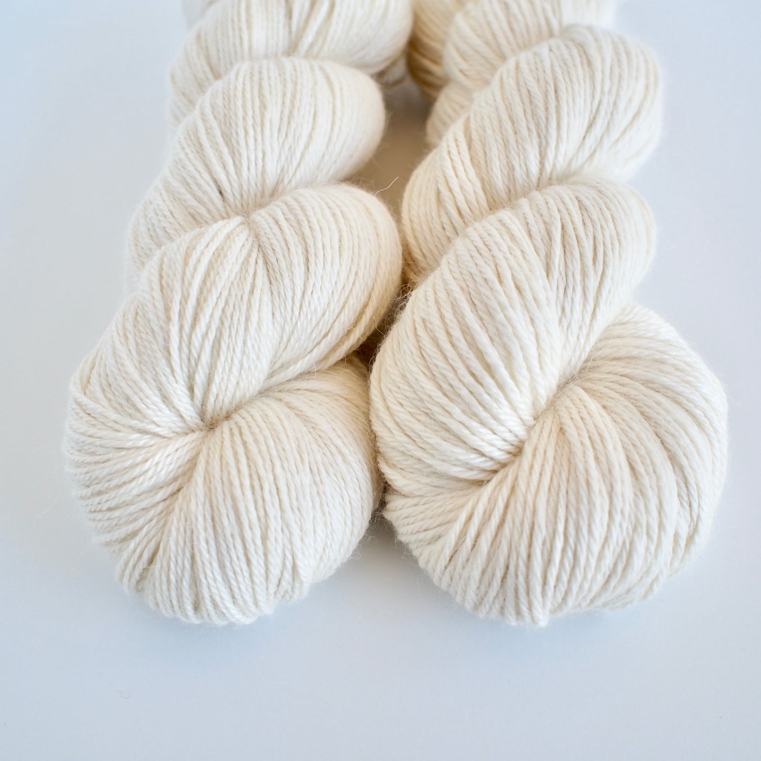 Our 2-Ply is the same construction as Glitter, without the nylon and stellina. 2-ply yarn gives your fabric more texture and visual movement. Great drape for shawls. Our 100% merino fingering weight option at 400 yds/100g is on the plumper side.